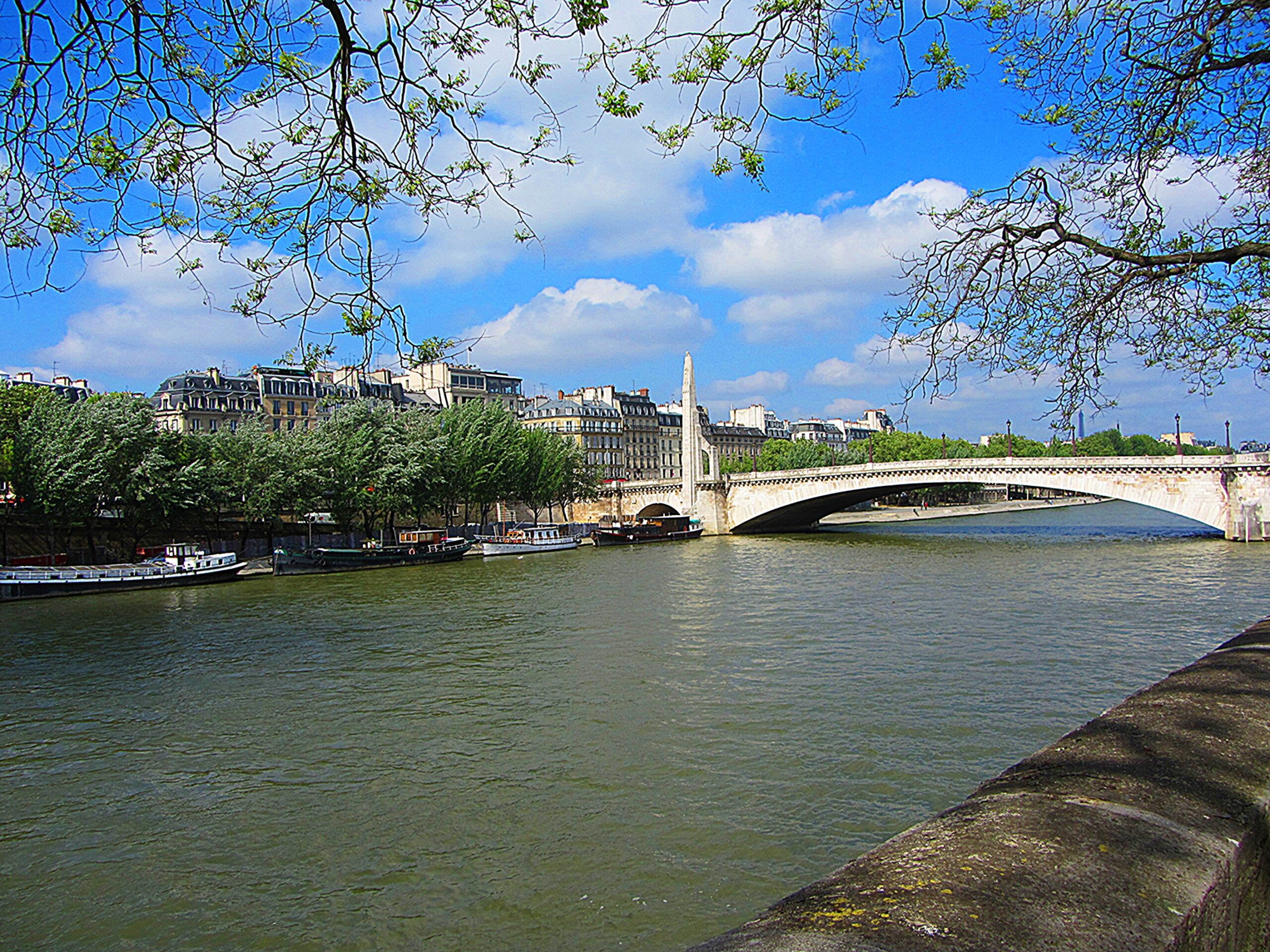 Le Pont de Fust fut construit en 1370 pour relier la Rive Gauche. Ce « Fust » avait alors la même signification que notre fût qui désignait soit un tonneau, soit le fût d’un arbre. Il avait donc été bâti avec de multiples troncs d’arbres dégrossis. Il y avait également à l’époque une « Tournelle » carrée c’est-à-dire une petite tour placée à l’entrée du pont. Elle faisait partie de l’enceinte Philippe Auguste établie entre la fin du 11ème siècle et le début du 13ème siècle pour protéger la capitale de toute attaque étrangère. En 1656, on décide enfin de construire un pont en pierre pour une meilleure résistance aux intempéries, élargi en 1841 sous le roi Louis-Philippe.
